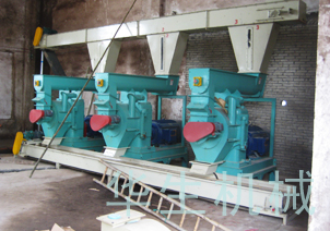 本生產(chǎn)線適合原材料豐富地區(qū)布置作業(yè),在國(guó)內(nèi)逐漸有較多客戶投資操作。采用多臺(tái)(3臺(tái)以上)制粒機(jī)組合,新一代刮板分配模式形成生產(chǎn)線。該生產(chǎn)線將大部分單機(jī)進(jìn)料輸送系統(tǒng)組合一體化,系統(tǒng)程序明了、工人操作方便。